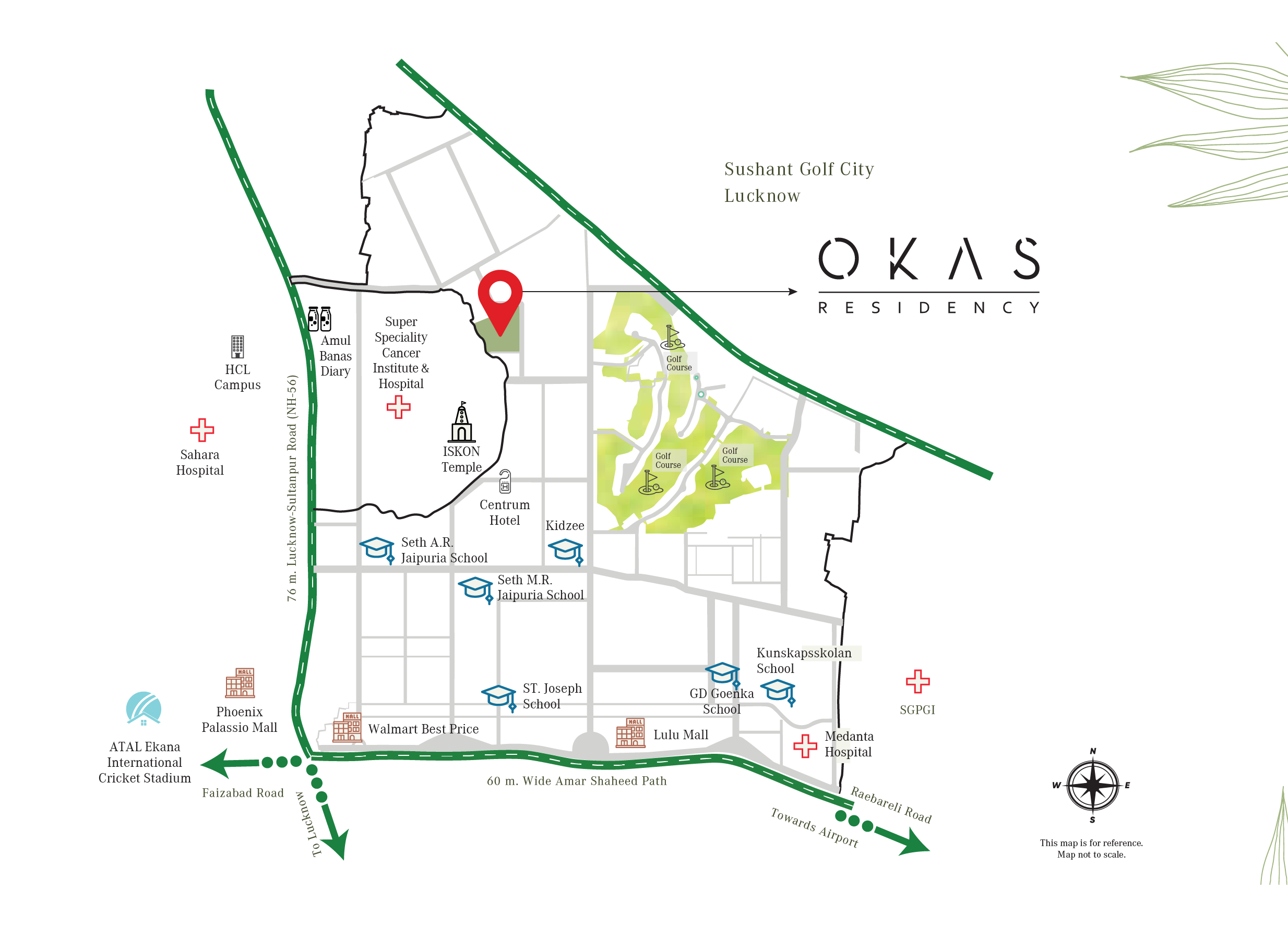 Okas Residency by Pardos is located in Sushant Golf City, Lucknow, and has successfully delivered high-quality homes ahead of schedule. The residences are surrounded by well-planned open spaces, providing a peaceful environment. Pardos OKAS Residency promotes nature-oriented living, allowing residents to experience pure air, sights, feelings, and lifestyles. Situated in Sushant Golf City, the property is easily accessible from Sultanpur Road, Amar Shaheed Path, and Kisan Vikas Path.